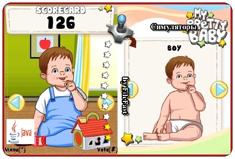 Тамагочи, симулирующий ухаживание за младенцами. Выберите девочку или мальчика и попытайтесь сделать их счастливыми. Меняйте подгузники, давайте игрушки, кормите и развлекайте их. Год выпуска: 2011 Жанр: Симуляторы Категория: Java игры Размер экрана: 128x160 176x220 240x320 Разработчик: Fugumobile Платформа: java Формат: .jar Вид устройства: для телефонов Язык интерфейса: английский Размер: 3,03 Mb Подготовил: FileFast